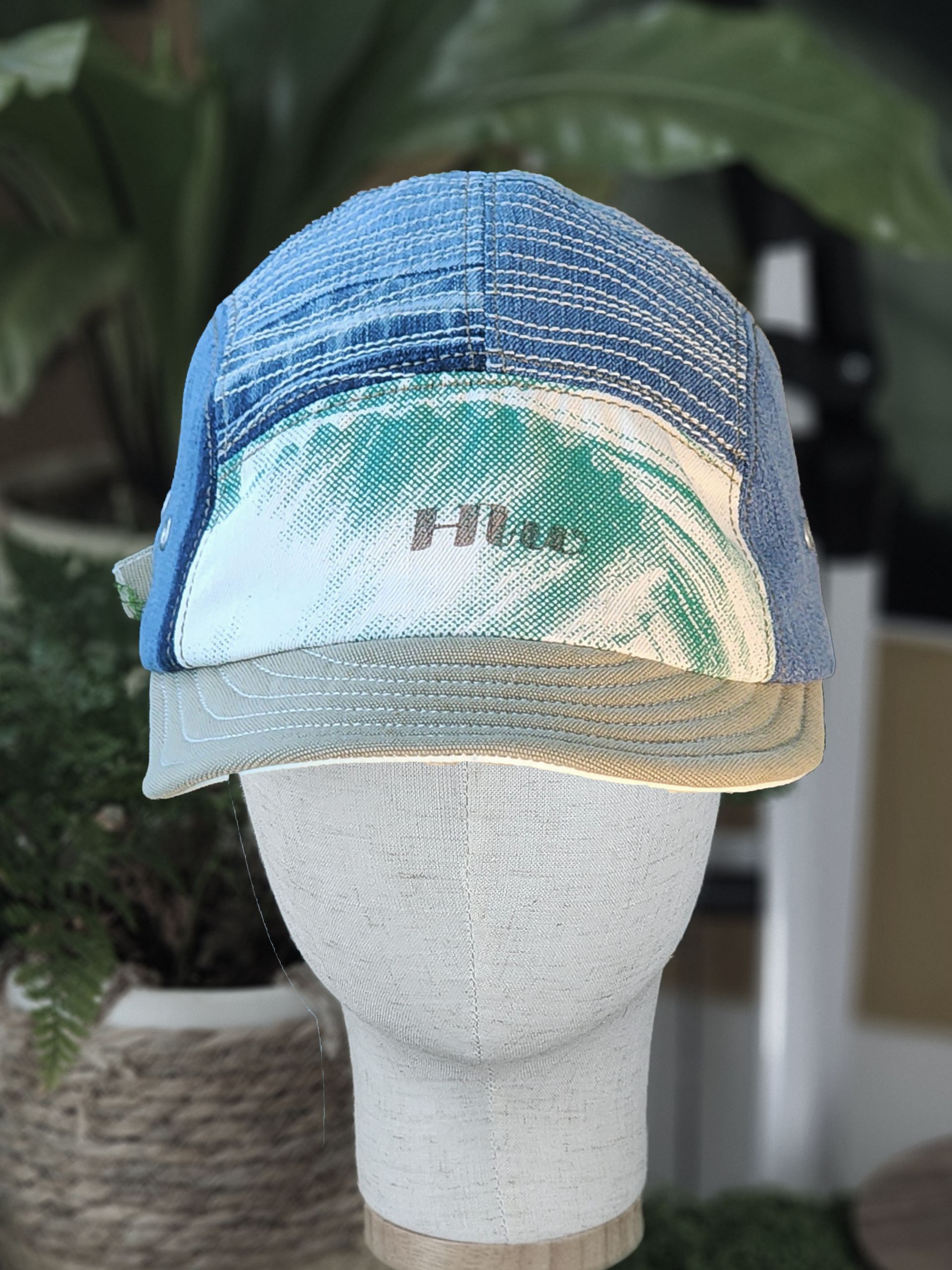 해변의 청량한 풍경을 담아낸 모자입니다.