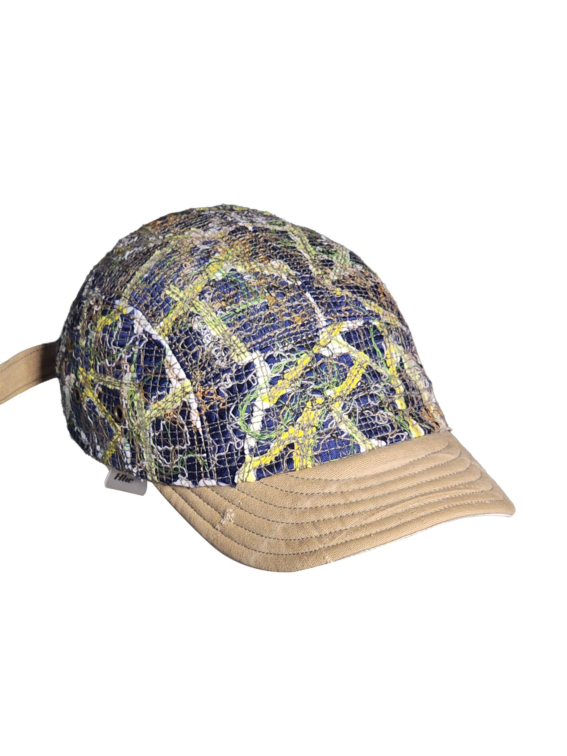 On a deep navy base, vivid yellow and white threads intertwine, evoking flashes of thunderbolts through the Threadgrow technique.