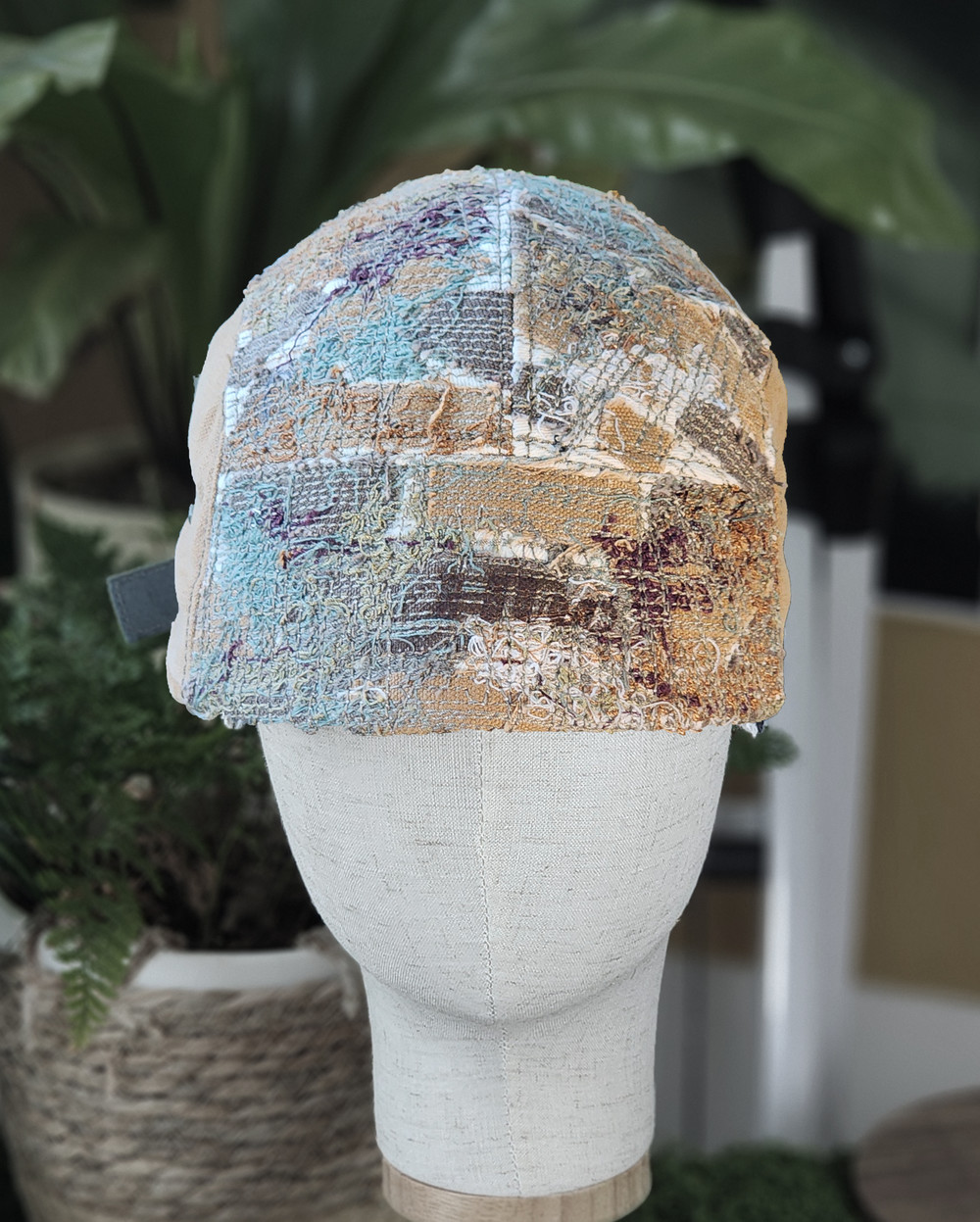 브라운 골덴 챙은 기댈 수 있는 따뜻한 안식처를, 몸통의 다채로운 실 뭉치들은 가장 소중한 순간들이 모인 색동 천 조각을 표현하고 싶었어요.
