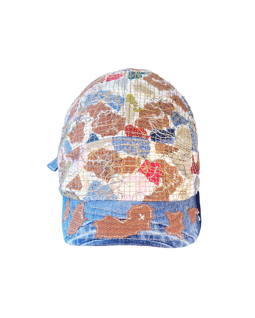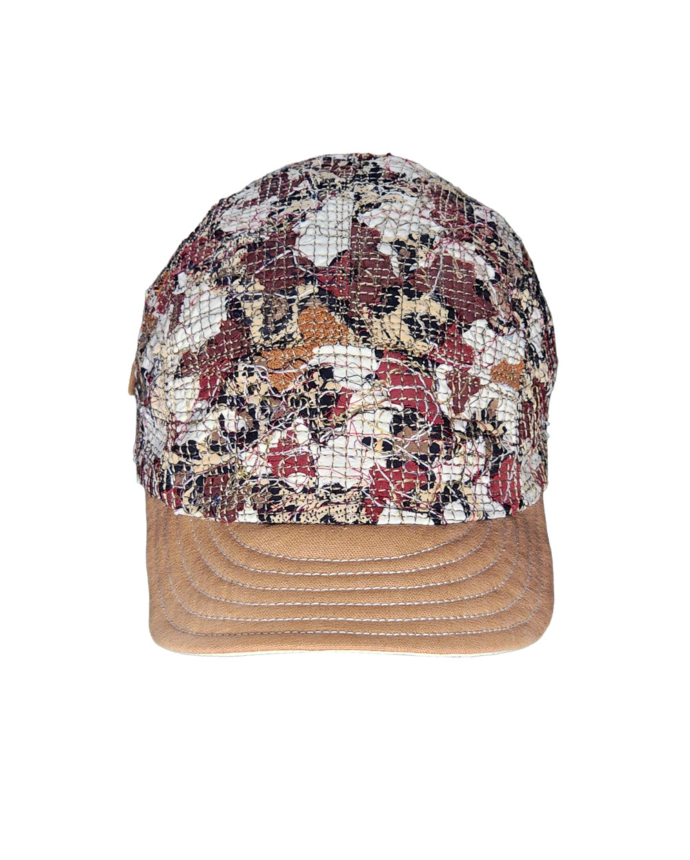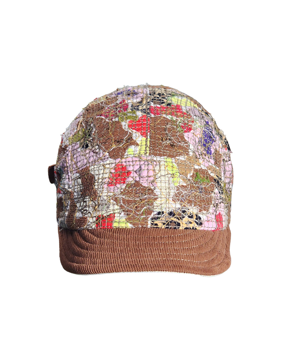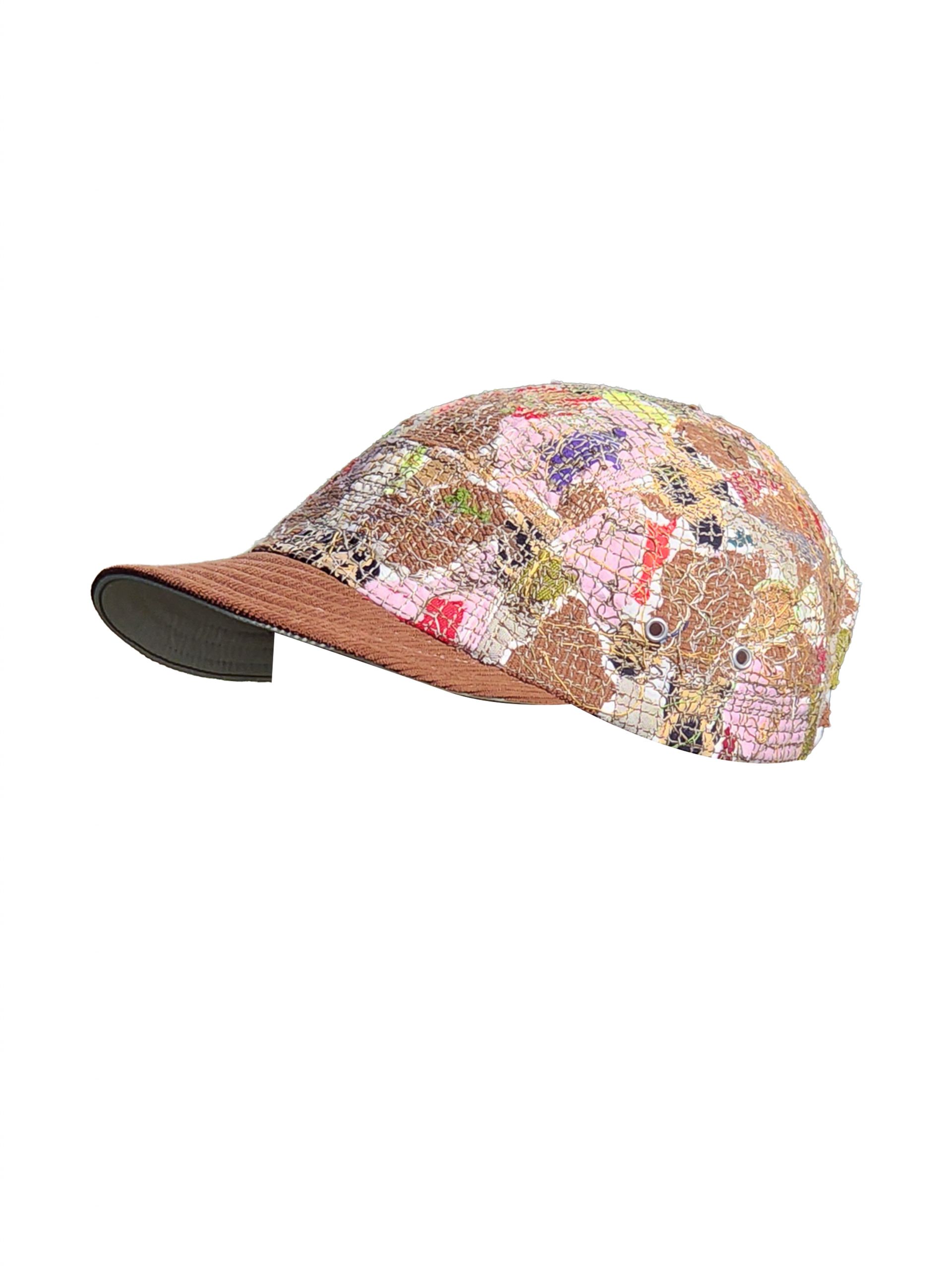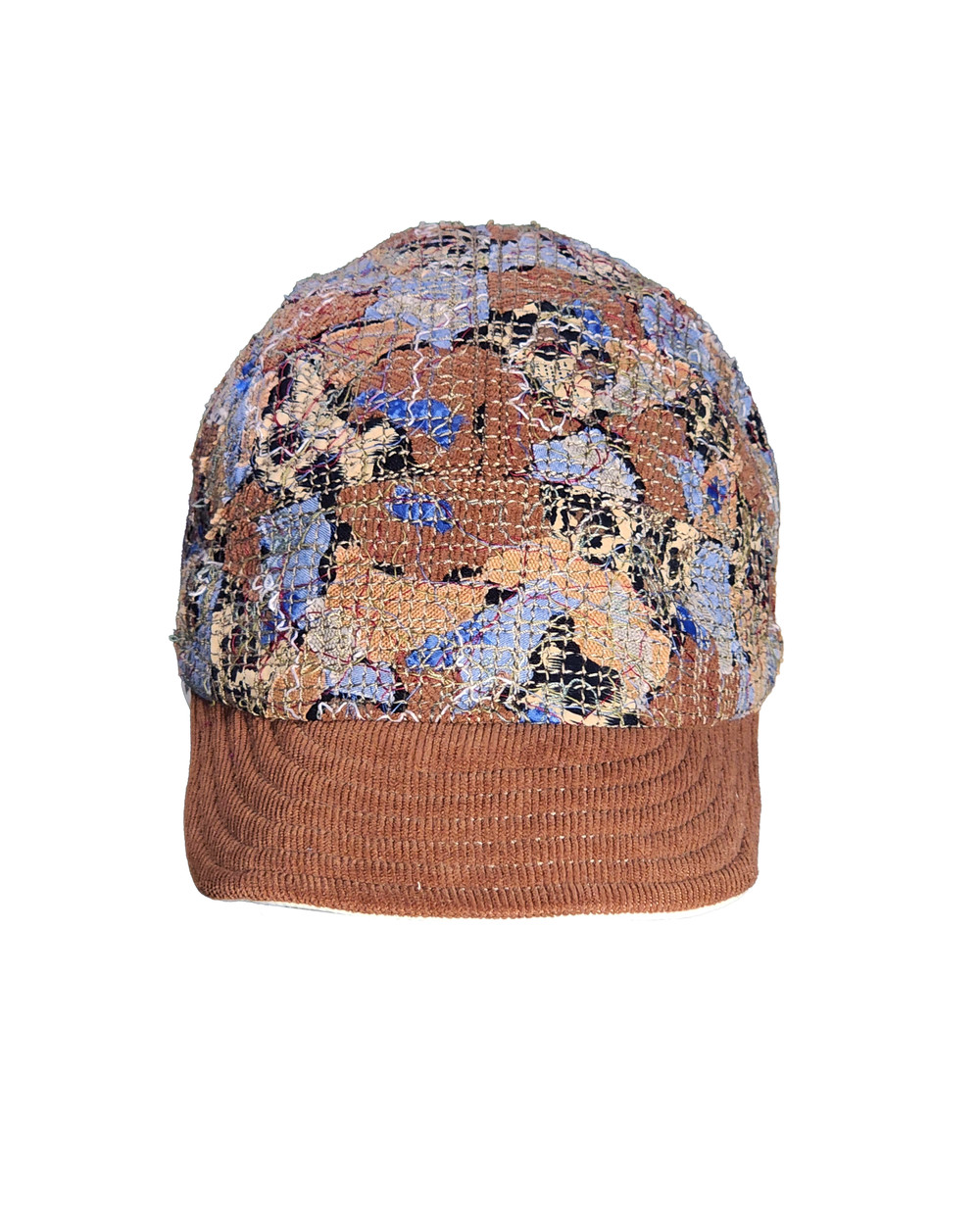 The brown corduroy brim offers a warm sense of shelter, while the rich threads on the body evoke colorful patches of the most cherished moments.