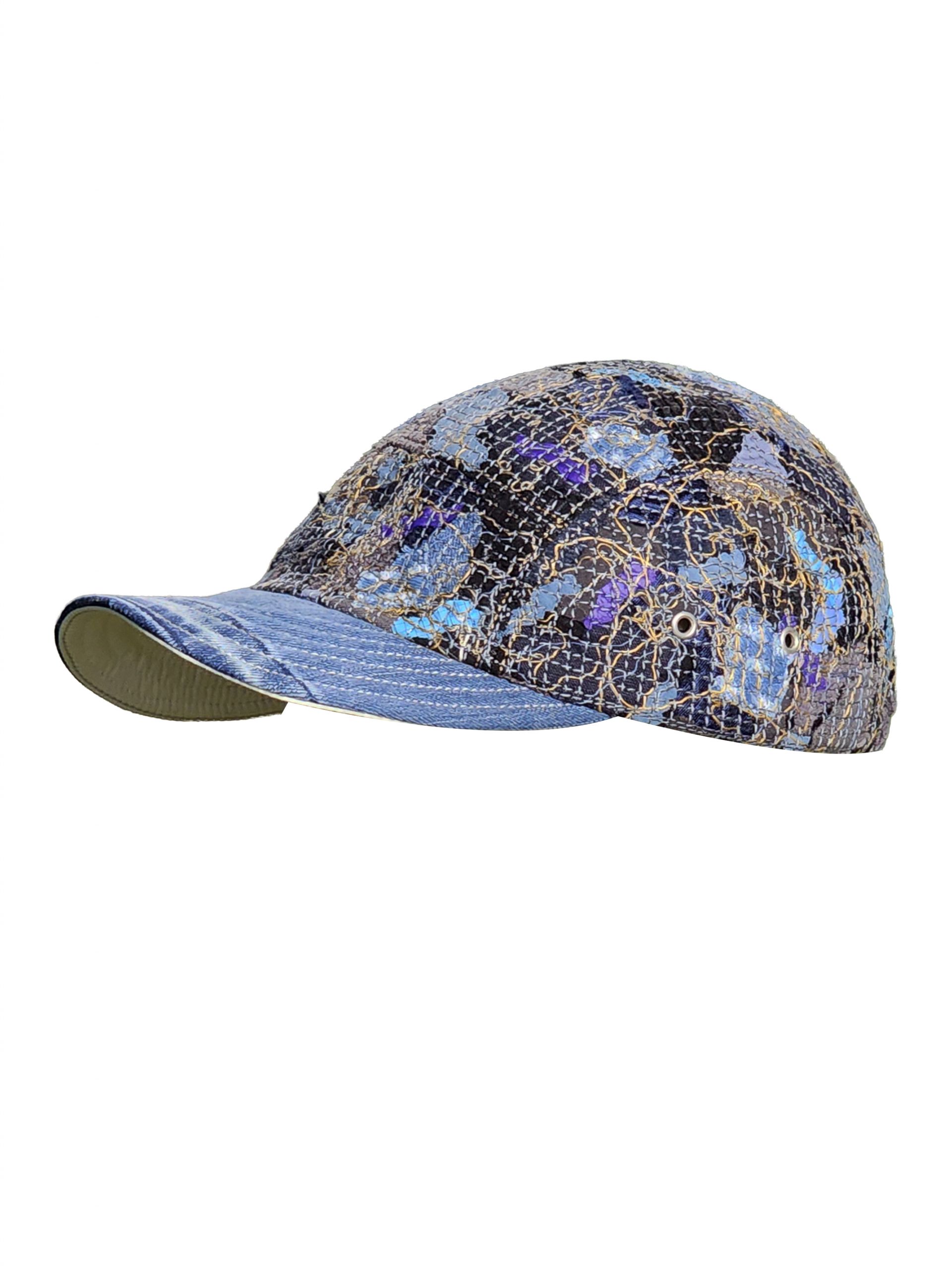The body, rich with indigo galaxies and vibrant nebulae, finds a new charm when meeting the casual denim brim.