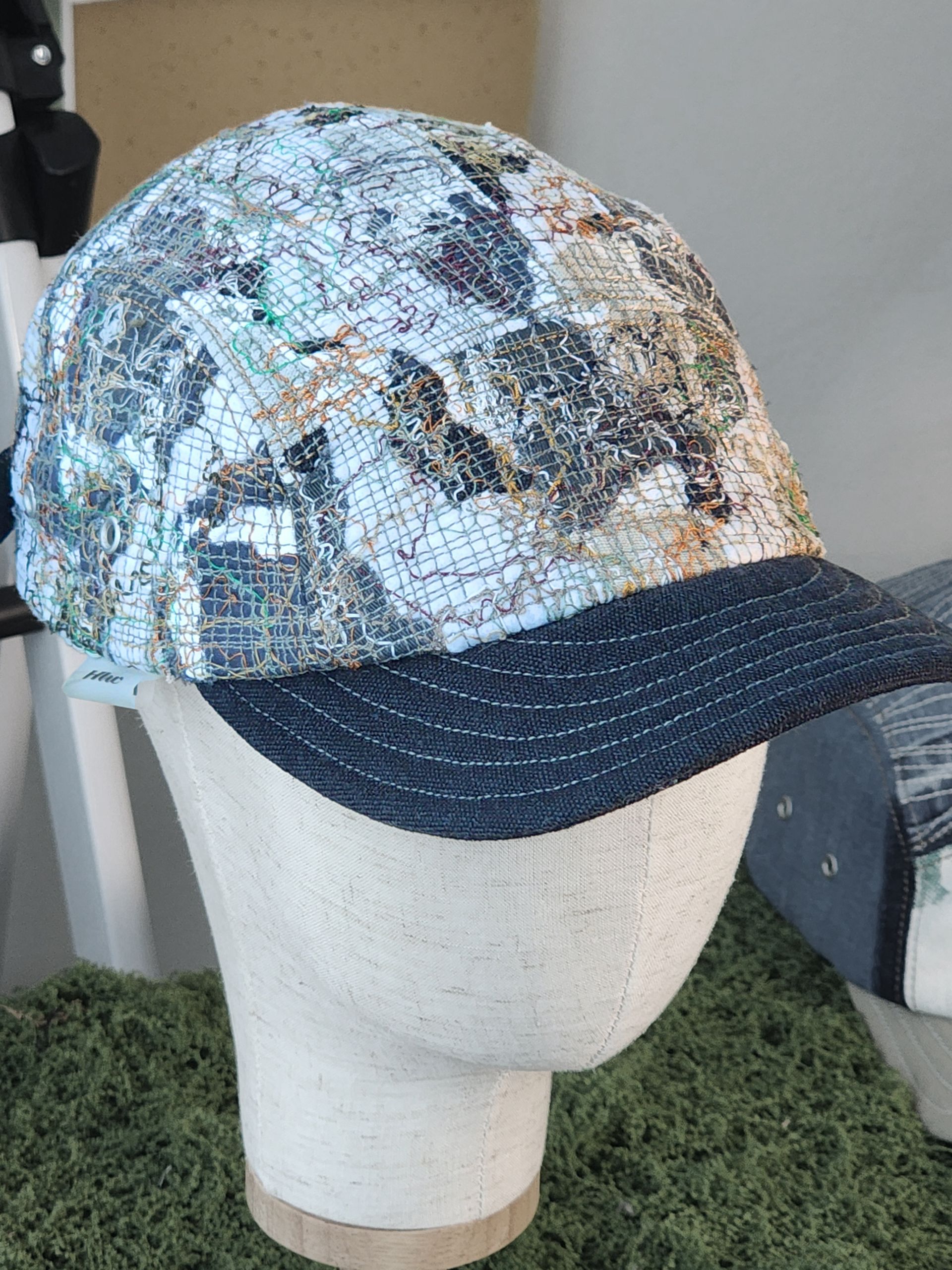 Clouds drift slowly across a muted sky, while branches sway like silhouettes in the breeze. Through the ‘Threadgrow’ technique, interlacing and unraveling threads spread like smoke, capturing the season’s bittersweet air. Calm blues, greys, and weathered browns layer together, creating a one-of-a-kind landscape to be worn.