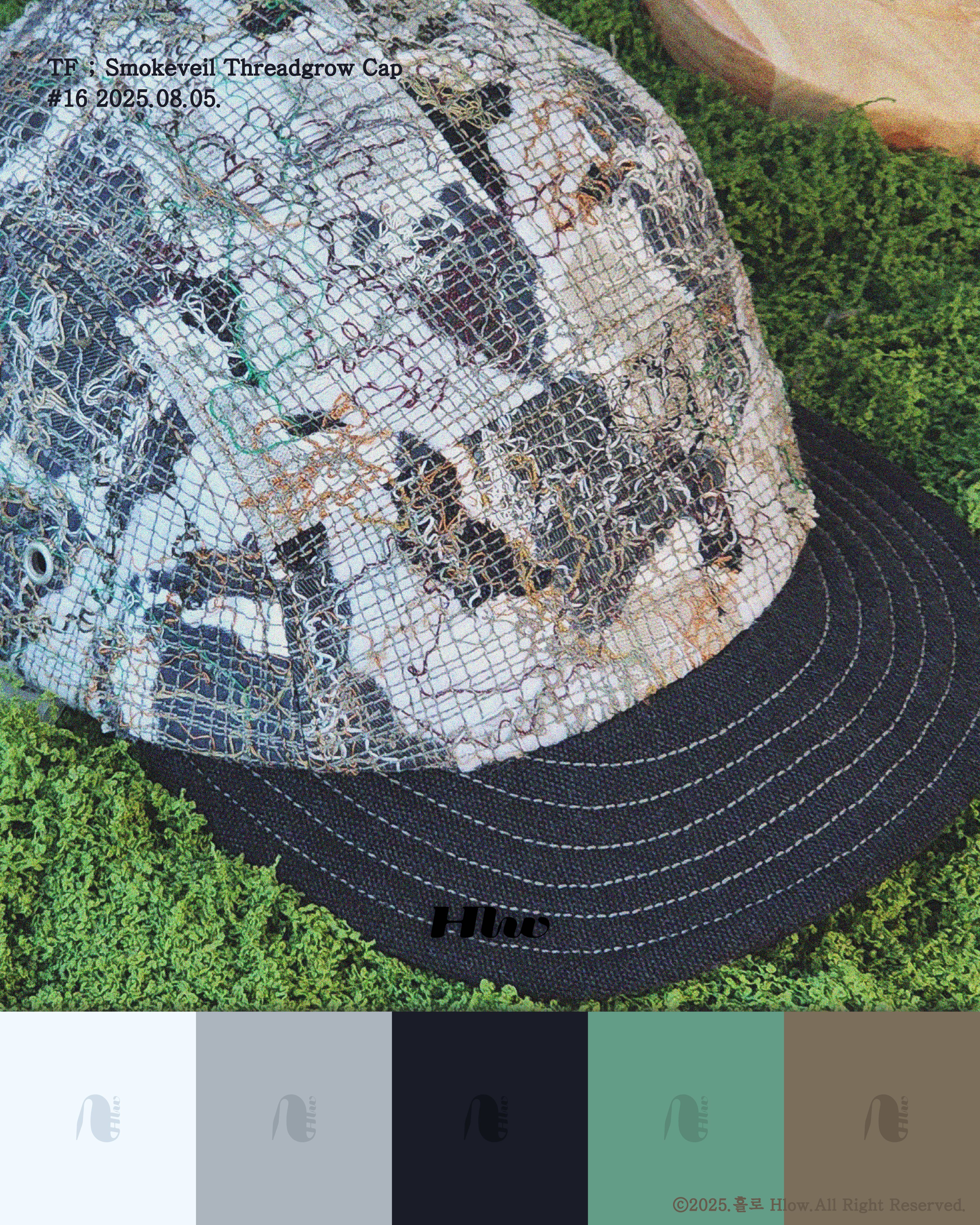 흐릿한 하늘 아래로 구름이 천천히 흘러가고, 바람에 흔들린 나뭇가지가 실루엣처럼 스며듭니다. ‘Threadgrow’ 기법을 통해 얽히고 풀리는 실들은 마치 연무처럼 퍼져, 쓸쓸함과 후련함이 공존하는 계절의 공기를 담아냈습니다. 차분한 블루와 그레이, 그리고 바랜 브라운이 층층이 겹쳐져, 단 하나뿐인 풍경을 머리에 얹는 순간이 완성됩니다.