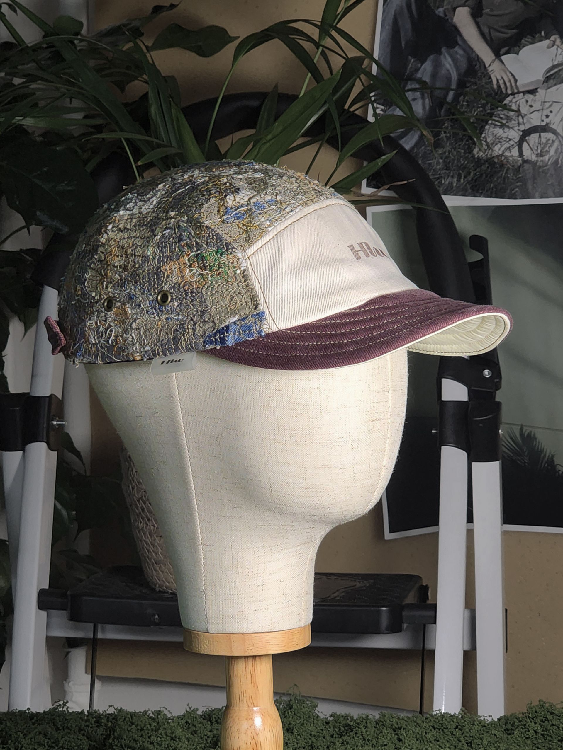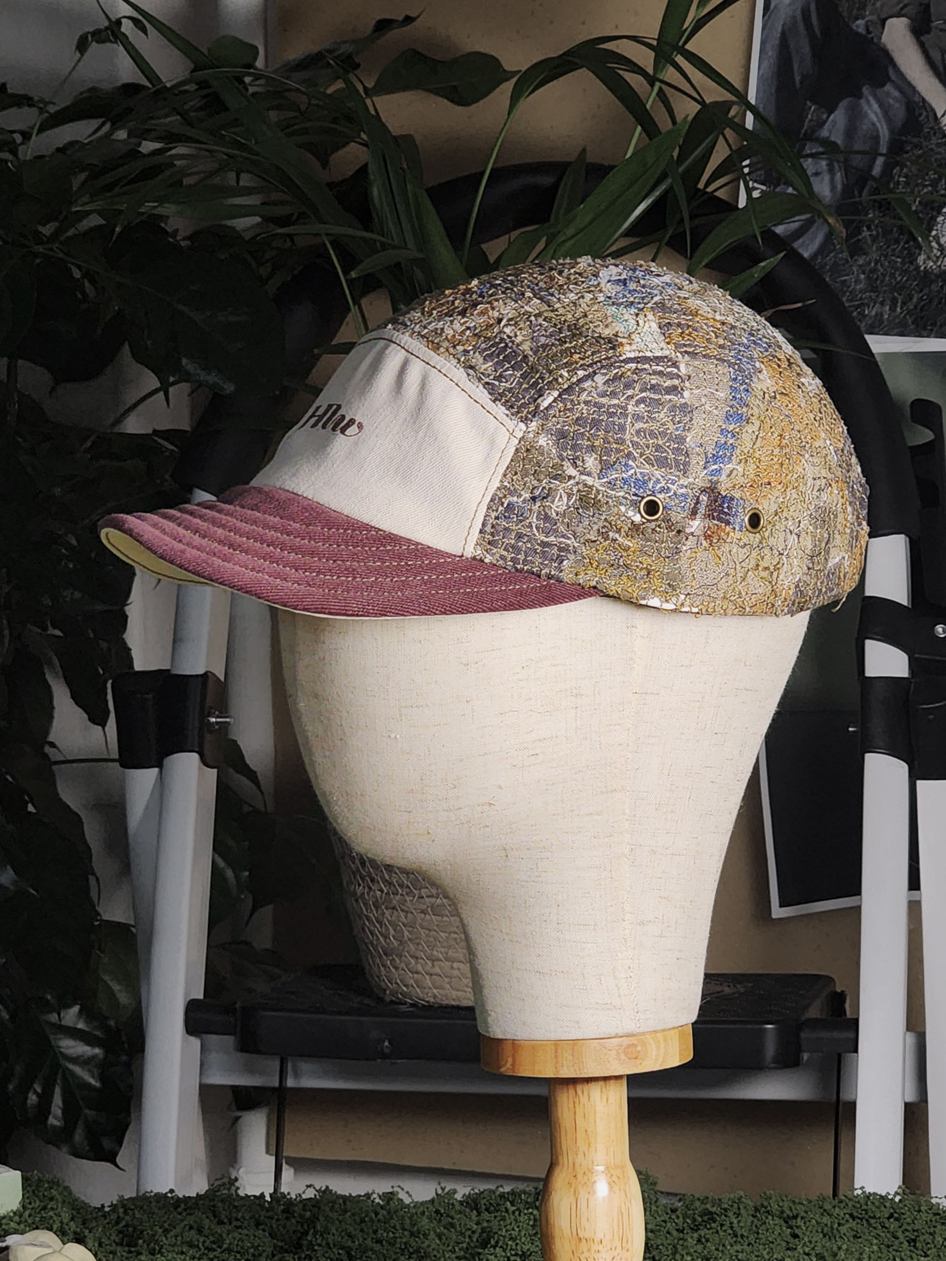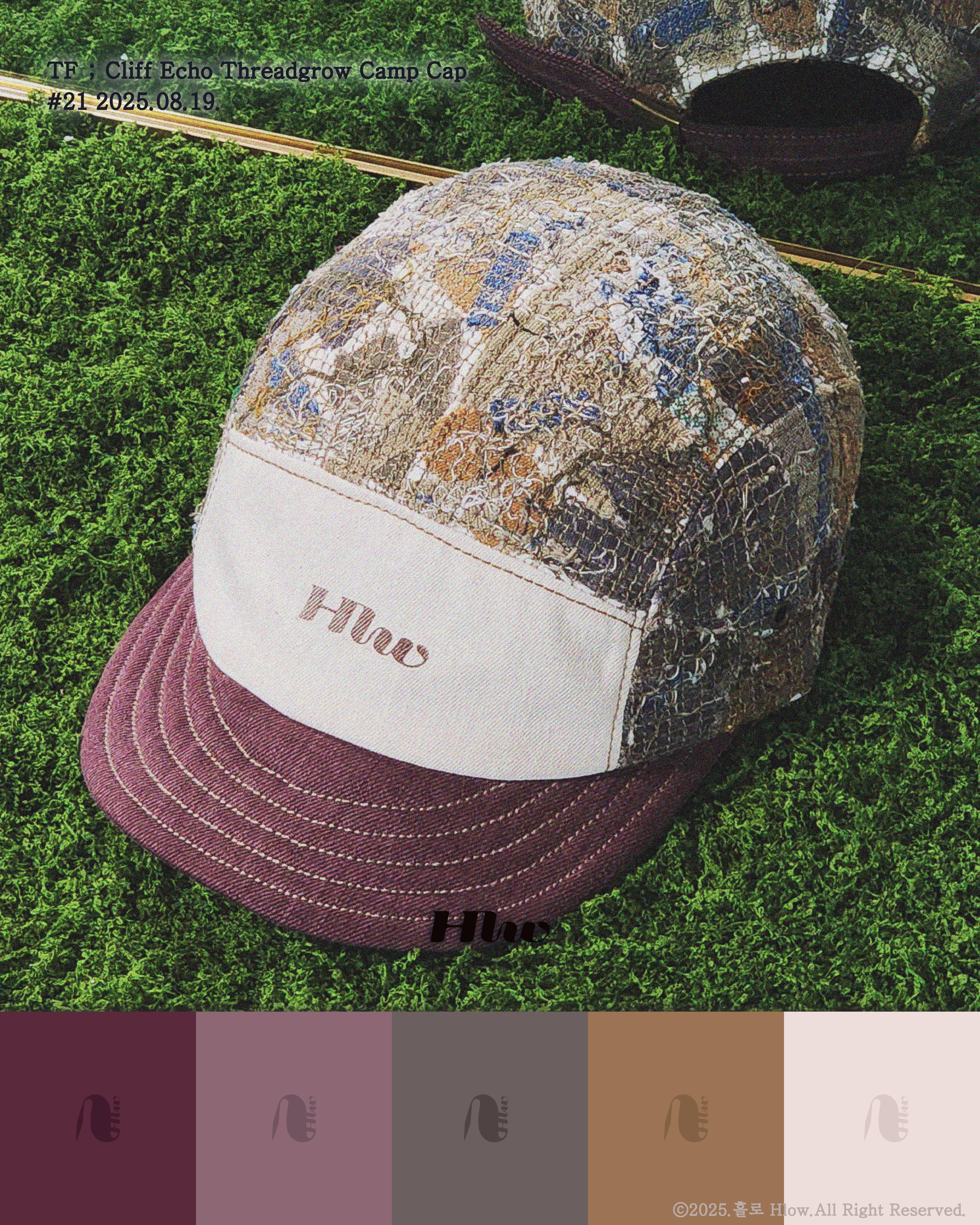 암벽에 새겨진 시간의 흔적처럼, 서로 다른 직물 조각들이 겹겹이 쌓여 독특한 표면을 만들어냅니다.