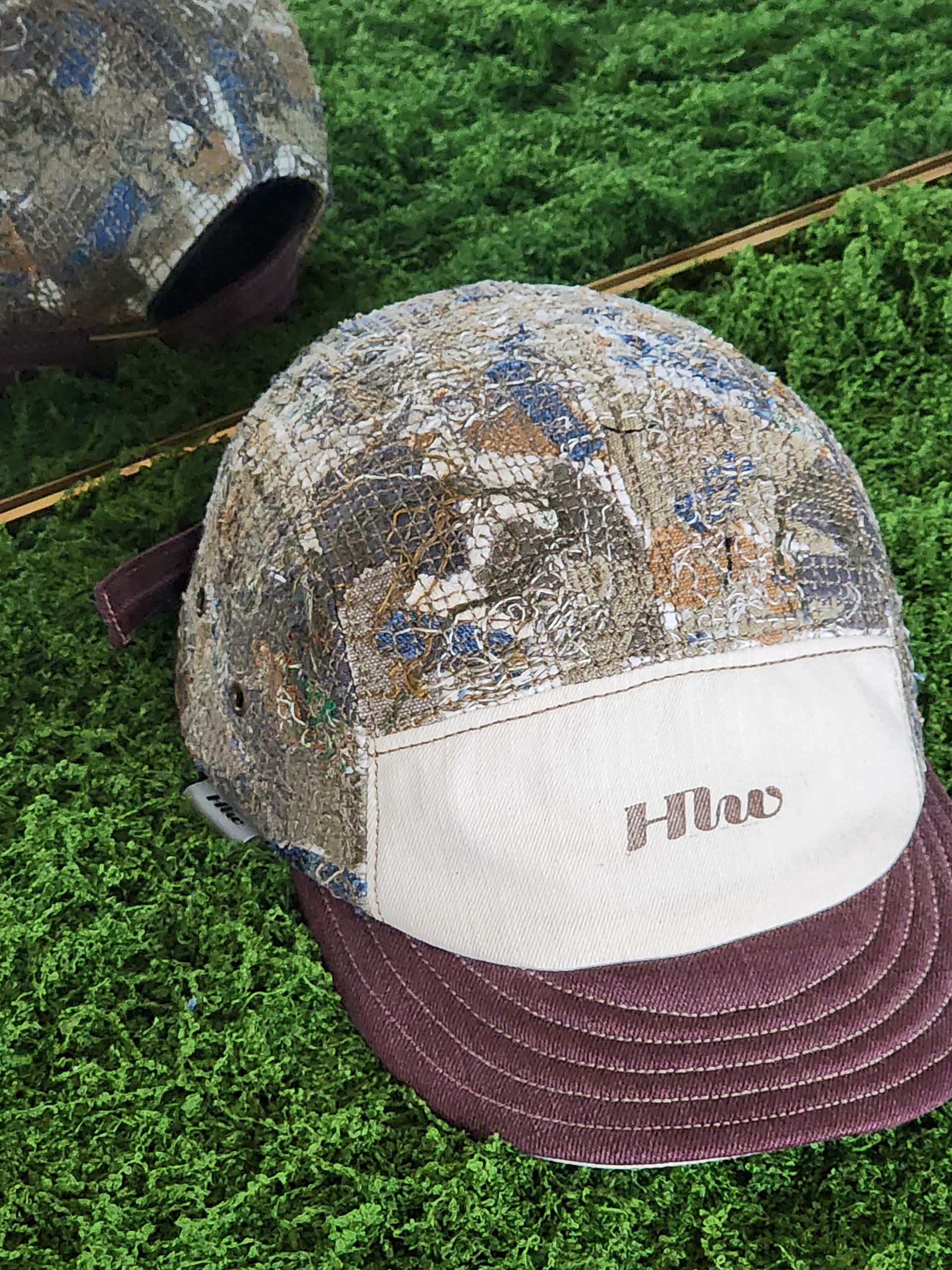 Like traces carved on a cliff face, layered fabric fragments create a unique textured surface.
